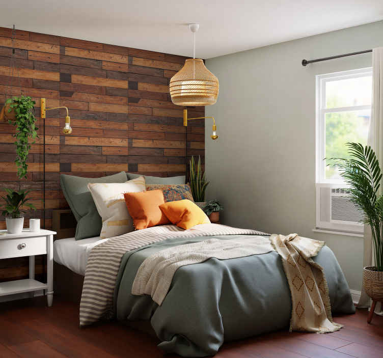 Referentienummer: P5923Houten latten Behang master bedroom is een prachtig grafisch ontwerp dat een natuurlijke en rustgevende uitstraling biedt. Het behang is vervaardigd in matte kleuren en gemaakt van vliesbehang. Met een grammage van 180 gram per vierkante meter is het stevig en duurzaam, met een levensduur van 10-15 jaar. Dit behang is perfect voor volwassenen die een warme en gezellige sfeer in hun slaapkamer willen creëren.