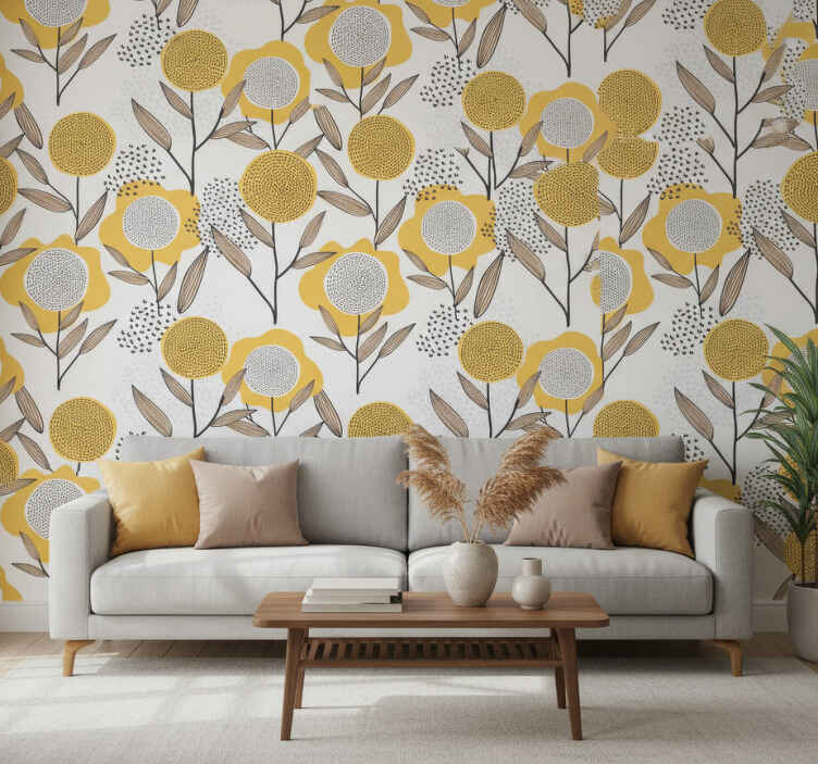 Het aanbrengen van het woonkamer behang geel abstract bloemenpatroon is eenvoudig en leuk! Gebruik een roller, borstel, kwast en snijder om het behang op de muur aan te brengen. Vergeet niet om lijm te gebruiken, zodat het behang stevig blijft zitten. Met de juiste hulpmiddelen tover je je woonkamer in een handomdraai om!