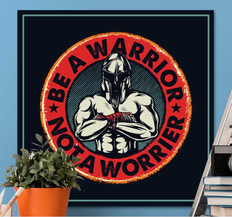 Dit prachtige canvas schilderij tekst wees een krijger brengt een krachtige boodschap in je ruimte. Met een inspirerende typografie van motiverende zinnen en een spartaans ontwerp van een strijder, straalt dit kunstwerk kracht en vastberadenheid uit. De illustratie nodigt uit tot reflectie en moedigt aan om niet te piekeren, maar te handelen. Dit typografische meesterwerk is perfect voor iedereen die een inspiratieboost nodig heeft in hun dagelijks leven!