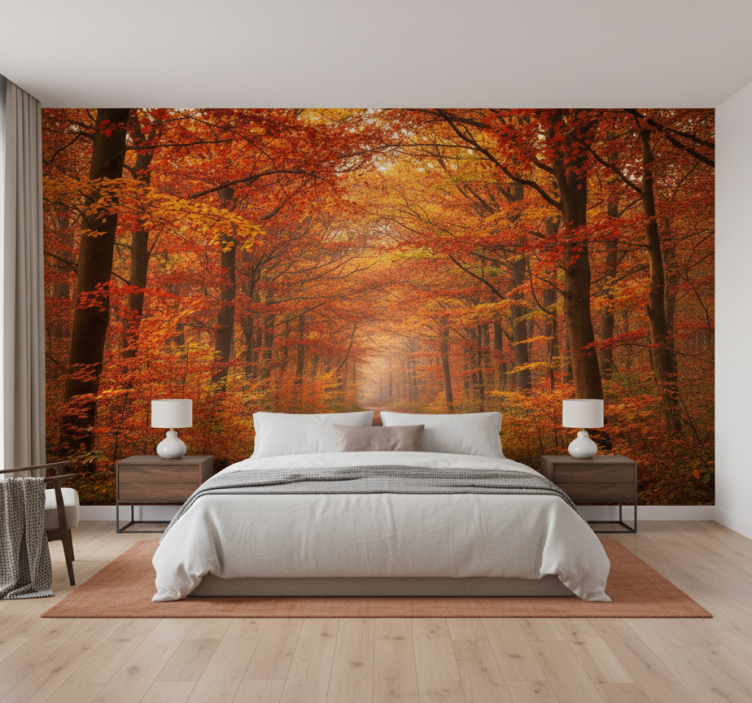 Het Behang bos herfstboom pad is de perfecte keuze voor iedereen die op zoek is naar een manier om een ruimte te transformeren. Dit behang vertelt een verhaal en brengt de rust van het bos naar binnen. Het zorgt voor een inspirerende en sfeervolle omgeving waar je kunt ontspannen en genieten. Het gebruik van dit behang in uw interieur biedt niet alleen visuele aantrekkingskracht, maar ook een gevoel van verbondenheid met de natuur, wat essentieel is voor een harmonieuze leefomgeving!