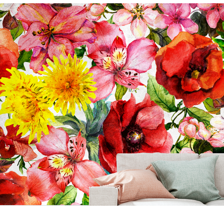 Laat je betoveren door de prachtige Bloemen foto behang levendige bloem compositie bloemen foto behang dat de schoonheid van klaprozen, madeliefjes en rozen samenbrengt in een kleurrijke waterverfachtige compositie! Dit unieke ontwerp brengt een vleugje natuur in je huis en creëert een warme, uitnodigende sfeer. Met zijn levendige kleuren en gedetailleerde bloemen biedt het een perfecte achtergrond voor elke kamer, waardoor je interieur direct opfleurt en een gevoel van rust en harmonie uitstraalt. Maak je ruimte bijzonder en geef het een frisse uitstraling die je elke dag weer inspireert!