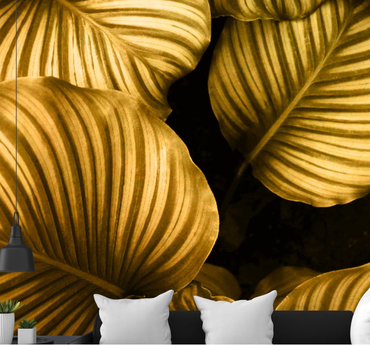 Breng de betoverende schoonheid van de natuur in uw huis met ons Fotobehang bloemen gouden bladeren patronen. Dit prachtige ontwerp combineert elegante bladeren met een tropisch gevoel en gouden accenten die een gevoel van luxe en verfijning uitstralen. Het getextureerde effect voegt een extra dimensie toe, waardoor de natuurlijke schoonheid van de flora tot leven komt op uw muren.