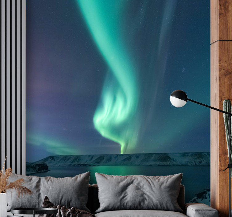 Het fotobehang lucht aurora borealis tentoonstelling brengt de magie van de nachtelijke hemel tot leven met een adembenemend ontwerp dat de schoonheid van de Aurora Borealis vastlegt. Dit prachtige behang toont een serene lucht vol dansende kleuren, weerspiegeld in een kalm meer dat het winterlandschap omarmt. Laat je betoveren door dit visuele meesterwerk dat elke kamer transformeert in een serene oase van natuurlijke schoonheid.