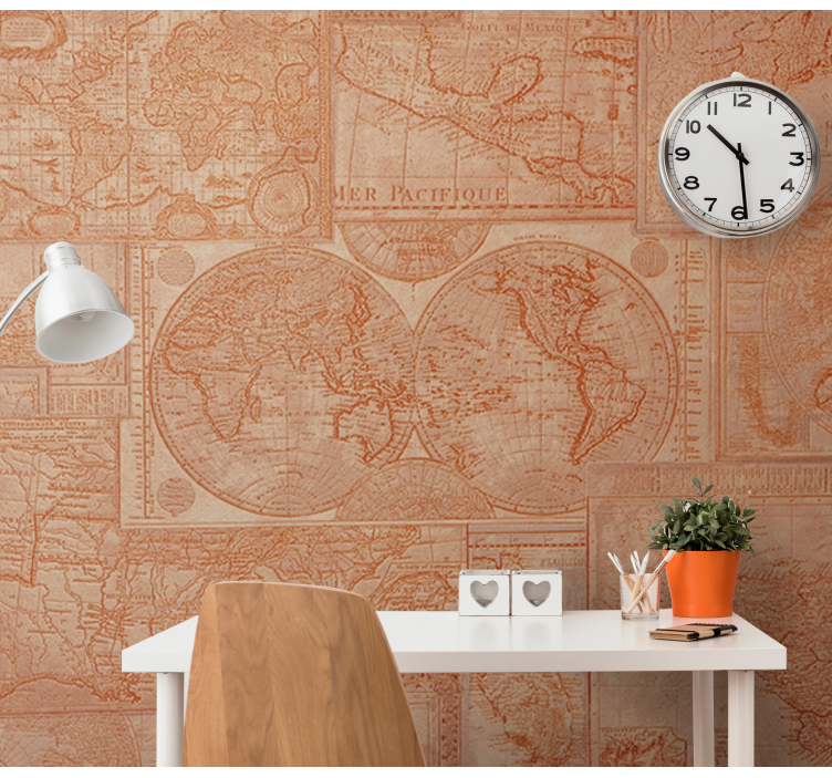 Ontdek de prachtige Fotobehang wereldkaart vintage wereldkaarten, een visueel meesterwerk dat de schoonheid van cartografie en geografie in uw interieur brengt. Dit unieke ontwerp toont een vintage wereldkaart die de wereldbol in matte kleuren weergeeft, waardoor een warme en uitnodigende sfeer ontstaat. Elke lijn en elk detail vertelt een verhaal en maakt van uw muur een venster naar de wereld!