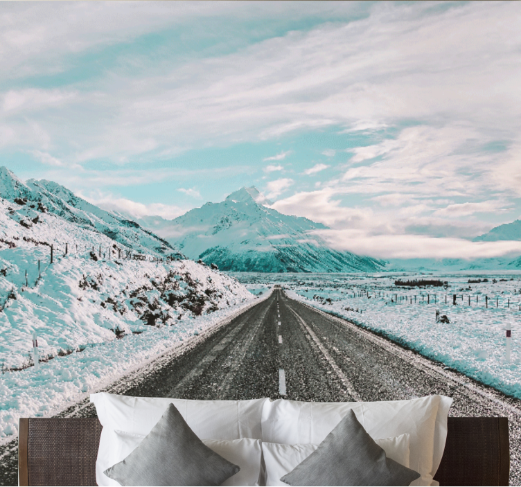 Breng de serene schoonheid van de winter in huis met ons Fototapet landschap ijzige bergpad. Dit prachtige ontwerp toont een besneeuwd berglandschap met een ijzig pad dat zich door de majestueuze bergen slingert, omringd door fluffy wolken. Het winterse uitzicht nodigt uit tot een moment van reflectie en rust, en creëert een betoverende sfeer in elke kamer.