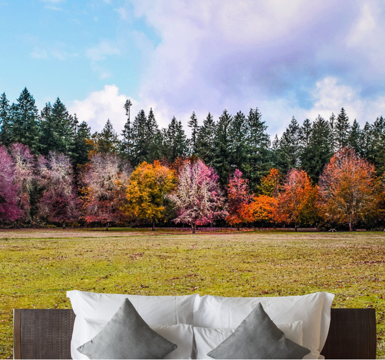 Breng de betovering van de natuur in huis met ons Natuur behang kleurrijk herfstbos. Dit prachtige ontwerp vangt de essentie van een herfstlandschap met zijn levendige kleuren van bladeren, hoge bomen en uitgestrekte velden. Het laat je wegdromen naar een serene woud waar je omringd bent door de schoonheid van de natuur en de rust van het landschap. Laat je inspireren door de fotografie die het herfstbos tot leven brengt!