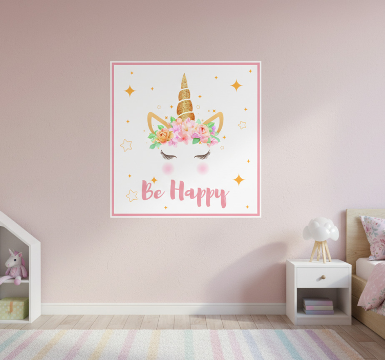 Kinderkamer poster eenhoorn met de tekst wees blij