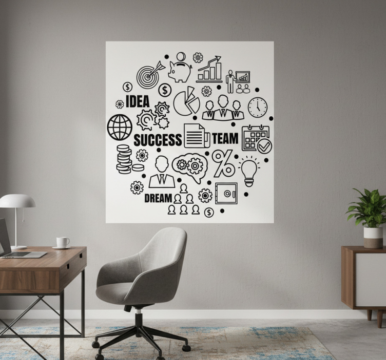 De Poster kantoor business ideogram poster kantoor is niet zomaar een decoratief stuk; het is een krachtige tool die de werkomgeving kan verrijken. Door deze poster op te hangen, creëer je een inspirerende atmosfeer die medewerkers motiveert en stimuleert. De visuele elementen van het ideogram zijn ontworpen om ideeën en concepten uit te drukken die essentieel zijn voor een succesvolle zakelijke omgeving. Het is een geweldige manier om creativiteit te bevorderen en een positieve werkcultuur te ondersteunen!