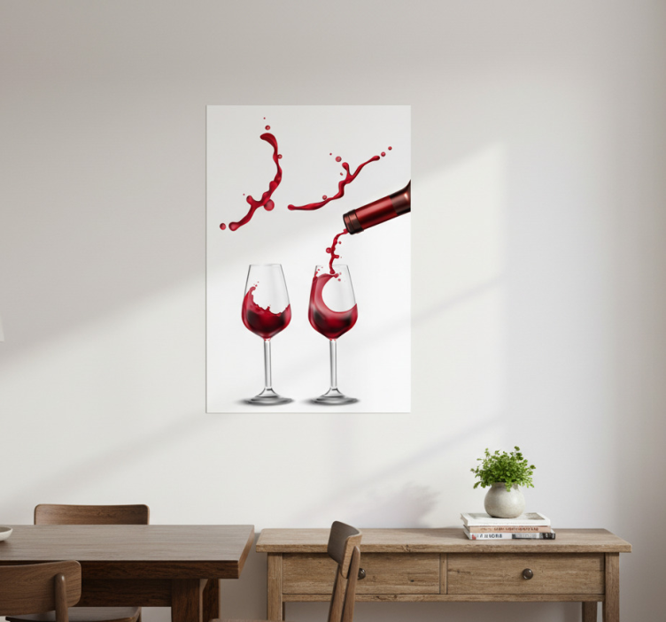 De Poster keuken dynamische wijnspetter poster is niet zomaar een decoratief item; het is een statement! Deze poster geeft uw keuken een speelse en uitnodigende sfeer, perfect voor degenen die genieten van koken en entertainen. Het ontwerp nodigt uit tot creativiteit en vrolijkheid, waardoor het een geweldige aanvulling is voor elke keukenruimte. Laat de levendige kleuren en het dynamische ontwerp uw kookervaring verrijken en inspireer vrienden en familie met deze opvallende decoratie!
