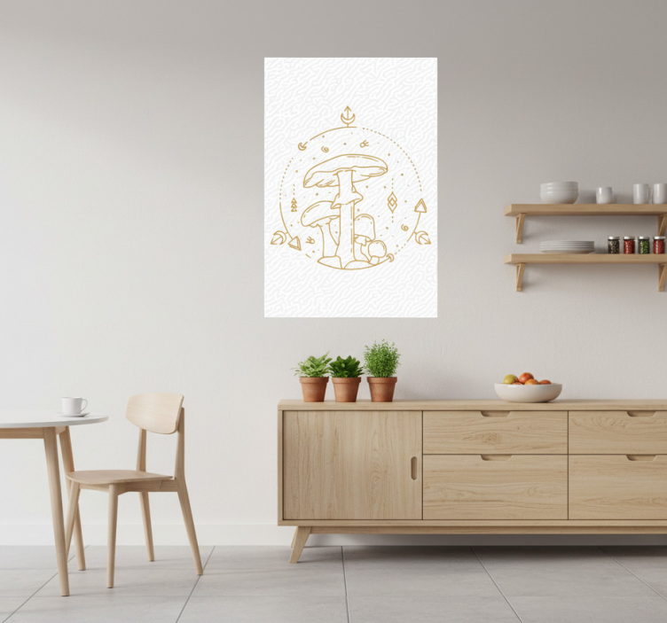 Poster keuken geometrisch paddenstoel monoline ontwerp