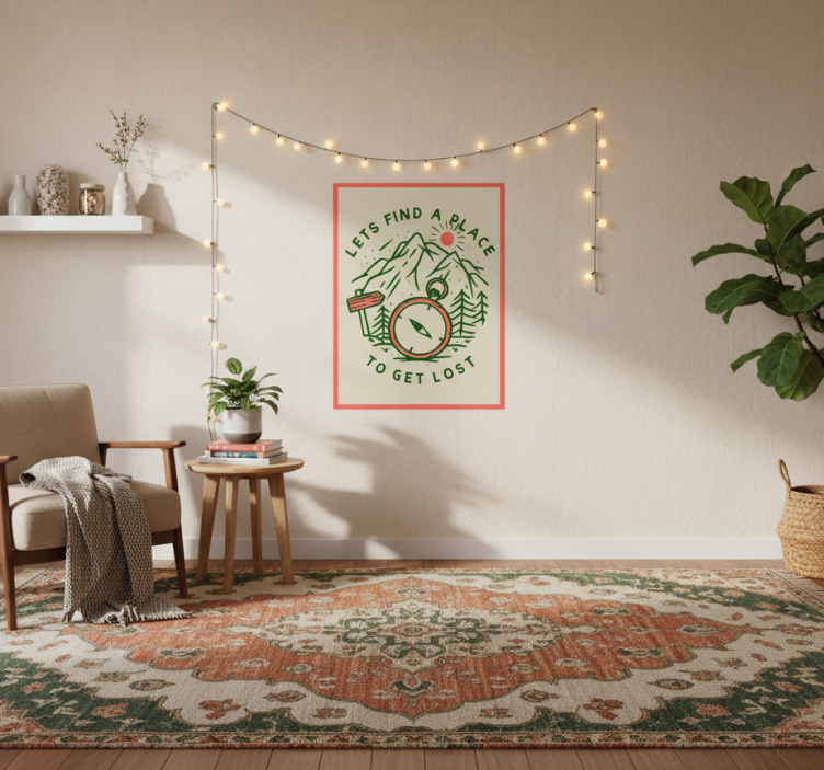 Je kunt de Poster met tekst laten we verdwalen poster tekst op verschillende manieren toepassen. Een geweldige optie is om dubbelzijdig plakband op de achterkant te gebruiken voor een strakke afwerking. Voor een meer klassieke look kun je de poster inlijsten met sterke lijm. Ook punaises of herbruikbare blu-tack zijn handige opties om de poster gemakkelijk op te hangen en te verplaatsen.
