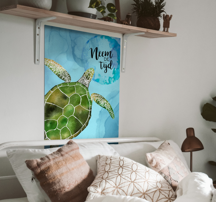 Waar wacht u nog op bestel meteen een poster neem de tijd schildpad super gemakkelijk op te hangen in bijvoorbeeld de woonkamer of slaapkamer!