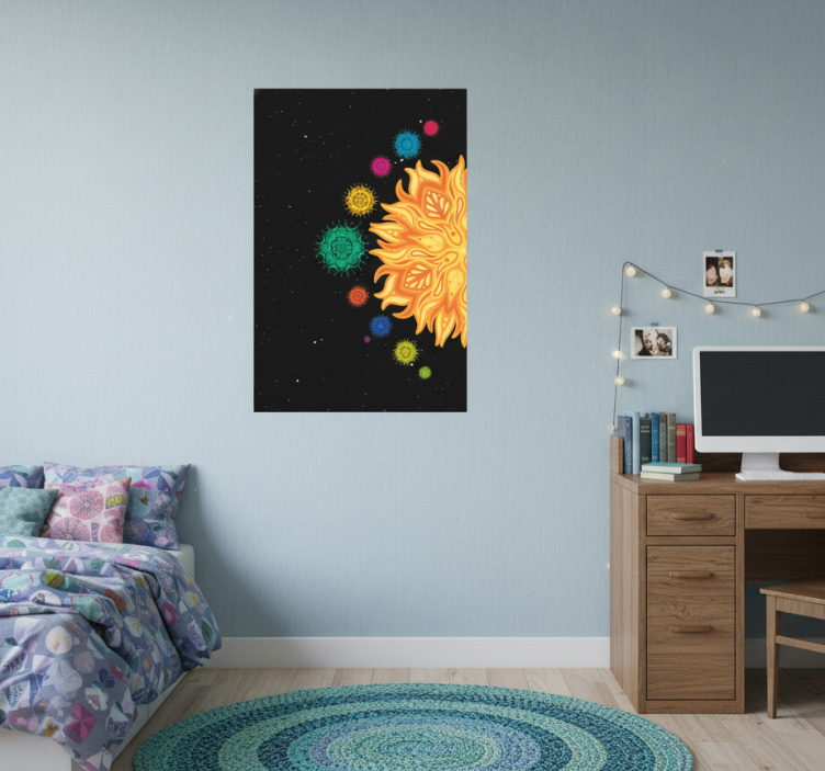 De Poster puber zonnestelsel mandala's is perfect voor het inrichten van een tienerkamer en voegt een speelse, maar toch verfijnde uitstraling toe. Het stimuleert de verbeelding en biedt een unieke manier om persoonlijke stijl uit te drukken. Deze poster is meer dan alleen decoratie; het creëert een omgeving die aanmoedigt tot dromen en ontdekken. Laat de sterren en mandala's je tiener inspireren om de wereld om hen heen te verkennen en hun eigen pad te volgen!