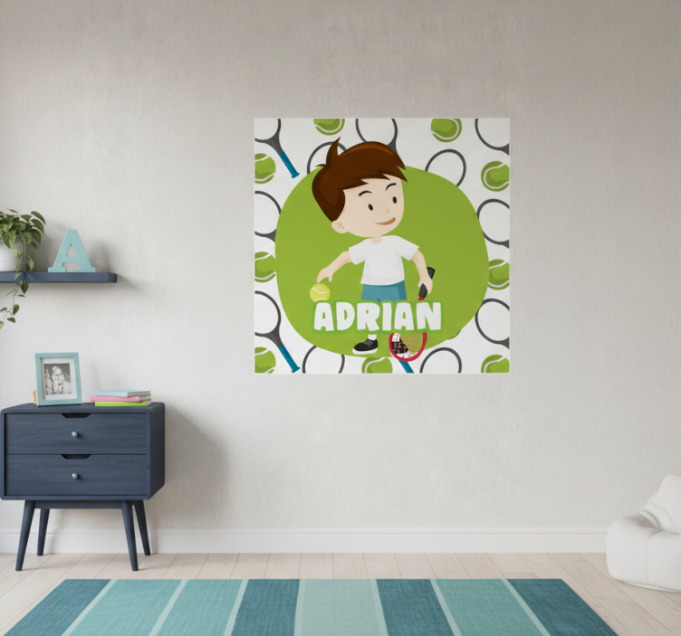 Referentienummer: G1098Deze Poster sport kind tennis speler met naam is een prachtig ontworpen decoratie die de passie voor tennis perfect vastlegt. Met een grafisch ontwerp dat sprankelt van energie, is deze poster vervaardigd met een 180g/m2 grammage en heeft het een halfmatte finish zonder reflecties. De hoge kleurintensiteit brengt de afbeelding tot leven, waardoor het een ideale keuze is voor elke jonge sportliefhebber!