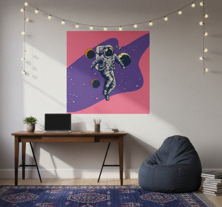 De Poster tienerkamer handgetekende astronaut vliegend stijl poster tienerkamer is de ideale keuze voor het creëren van een inspirerende sfeer in de kamer van jouw tiener. Deze poster voegt niet alleen kleur en leven toe aan de muren, maar stimuleert ook de verbeelding en creativiteit van jongeren. Laat de avontuurlijke geest van je tiener bloeien met deze unieke decoratie die perfect aansluit bij hun interesses en dromen.
