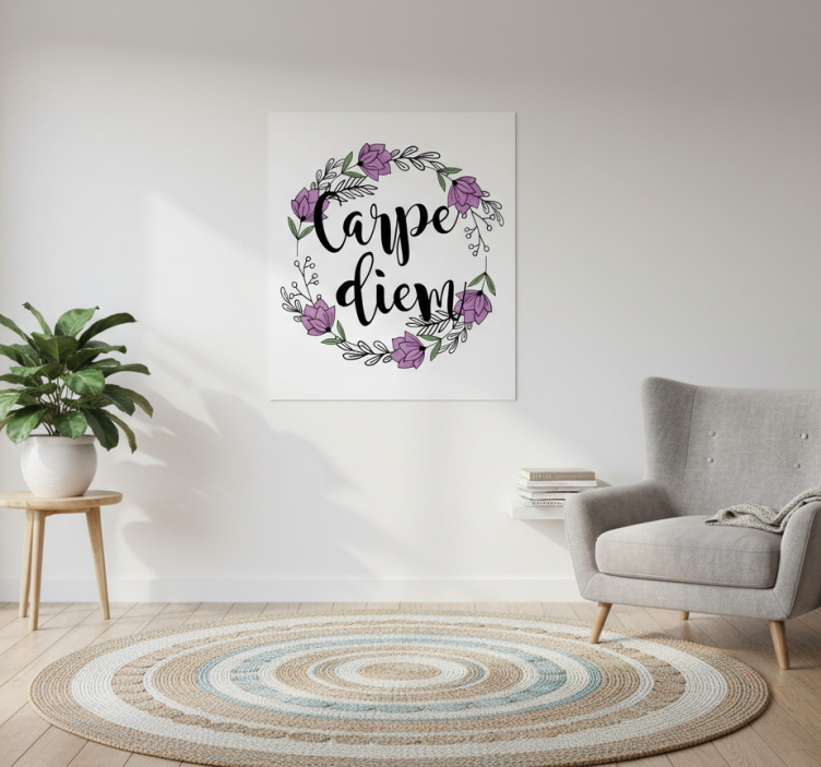Poster woonkamer carpe diem kleurrijk bloemenpatroon