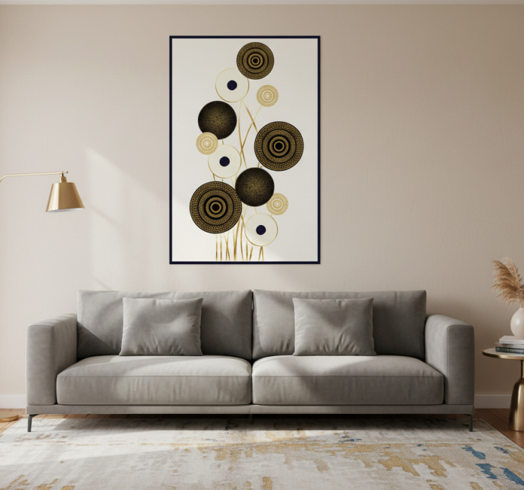 De Poster woonkamer circles glamour decoratie poster woonkamer is niet alleen een visueel meesterwerk, maar ook een bron van inspiratie voor uw interieur. Deze poster voegt een unieke flair toe aan elke ruimte en creëert een uitnodigende sfeer. Het is de perfecte manier om uw persoonlijke stijl te uiten en een warme ambiance te creëren die gasten zal verbazen. Laat de cirkels en kleuren uw creativiteit aanwakkeren en transformeer uw woonkamer in een stijlvolle oase!
