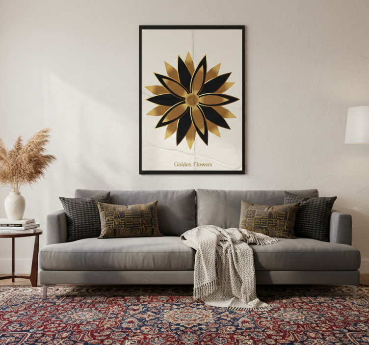 De Poster woonkamer gouden bloemen poster woonkamer is een uitstekende keuze voor iedereen die zijn leefruimte wil transformeren. Met zijn stralende kleuren en verfijnde ontwerp geeft deze poster een gevoel van luxe en stijl. Het is niet alleen een decoratief element, maar ook een manier om uw persoonlijkheid en smaak te weerspiegelen. Laat deze poster uw muur opfleuren en creëer een warme en uitnodigende sfeer in uw huis!
