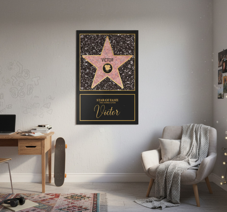 De Poster woonkamer op maat ster van roem is niet alleen een decoratief element, maar ook een inspiratiebron voor uw interieur. Deze poster voegt niet alleen kleur en leven toe aan uw muren, maar creëert ook een unieke sfeer die gasten zeker zal aanspreken. Laat deze poster uw creativiteit prikkelen en maak van uw woonkamer een waar kunstwerk waar iedereen van zal genieten!