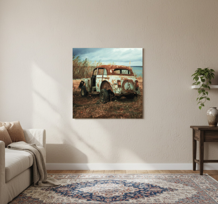 Breng karakter en charme in jouw interieur met de Poster woonkamer oude vieze auto in de velden. Dit unieke ontwerp toont een oude, vervallen auto die majestueus in een weids veld staat, omringd door de schoonheid van de natuur. De poster is vervaardigd van hoogwaardig 180g/m2 papier met een halfmatte finish zonder reflecties, wat zorgt voor een visueel aantrekkelijke uitstraling. Dankzij de hoge kleurintensiteit komt het ontwerp tot leven en voegt het een vleugje nostalgie toe aan jouw woonruimte. Laat deze poster een gespreksonderwerp zijn en inspireer anderen met jouw unieke stijl!