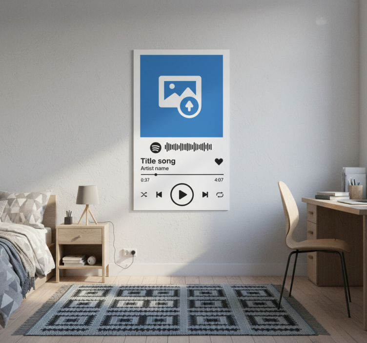 Referentienummer: G760Breng een vleugje muziek en creativiteit in uw woonkamer met onze Poster woonkamer spotify canvas witte achtergrond. Dit unieke ontwerp is perfect voor muziekliefhebbers en biedt een frisse, moderne uitstraling. De poster heeft een halfmatte finish zonder reflecties en een hoge kleurintensiteit die de aandacht trekt. Met een grammage van 180g/m2 is deze poster ideaal voor een duurzame decoratie die jarenlang meegaat.