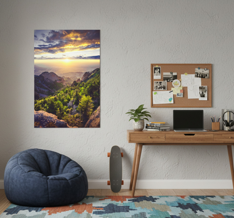 De Poster woonkamer zonsopgang op de berg poster woonkamer is de perfecte aanvulling voor elke woonkamer. Het creëert niet alleen een warme en uitnodigende sfeer, maar inspireert ook tot rust en contemplatie. Met zijn prachtige kleuren en inspirerende afbeelding, nodigt deze poster uit tot dromen over avonturen in de natuur. Het is niet alleen een decoratief element, maar ook een bron van inspiratie die elke dag een glimlach op uw gezicht tovert!