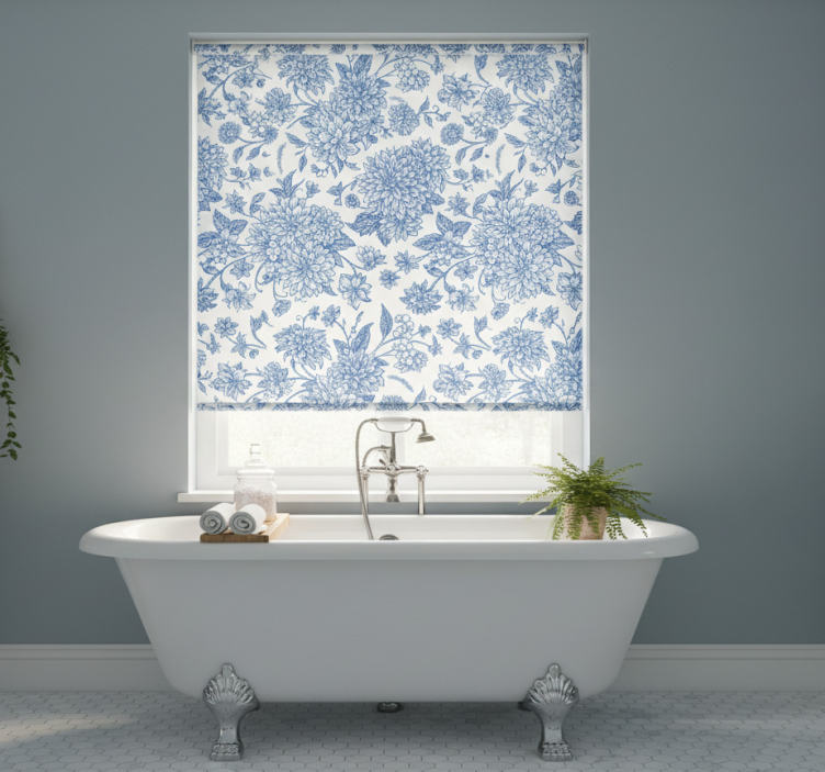 Blauw rolgordijn blauwe dahlia bloemmotief