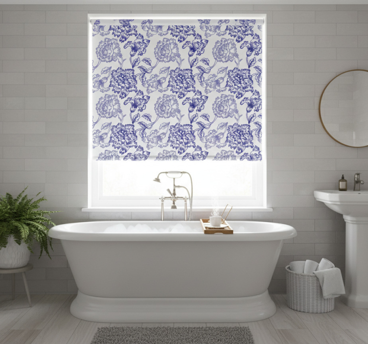 Blauw rolgordijn elegante bloemenpatronen