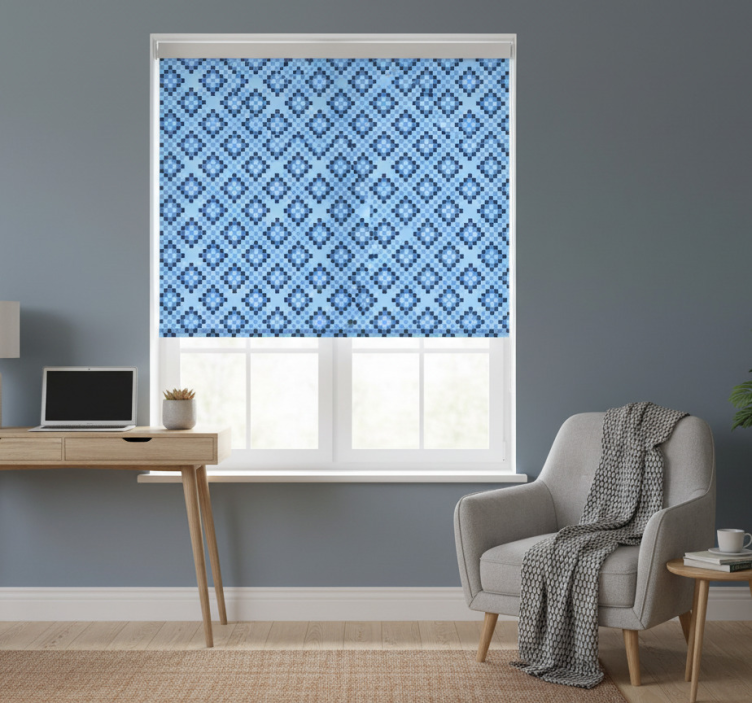 Blauw rolgordijn geometrisch blauw pixelpatroon