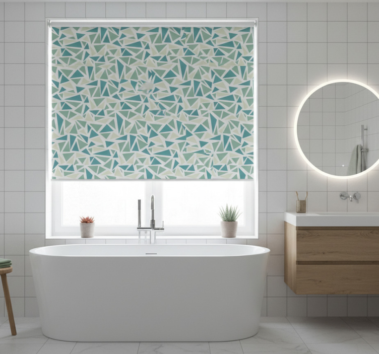 Blauw rolgordijn groene retro mozaïek