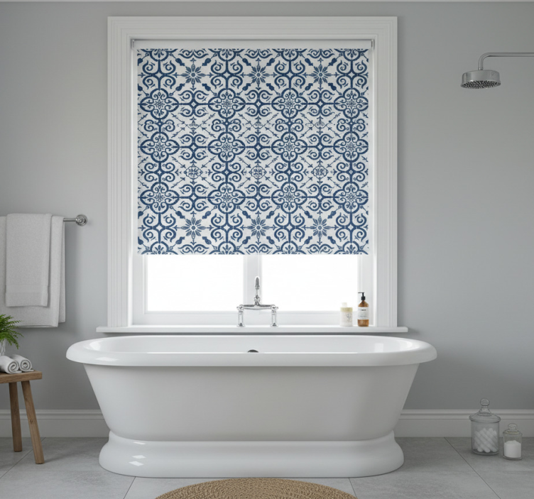 Blauw rolgordijn marokkaanse blauwe tegels