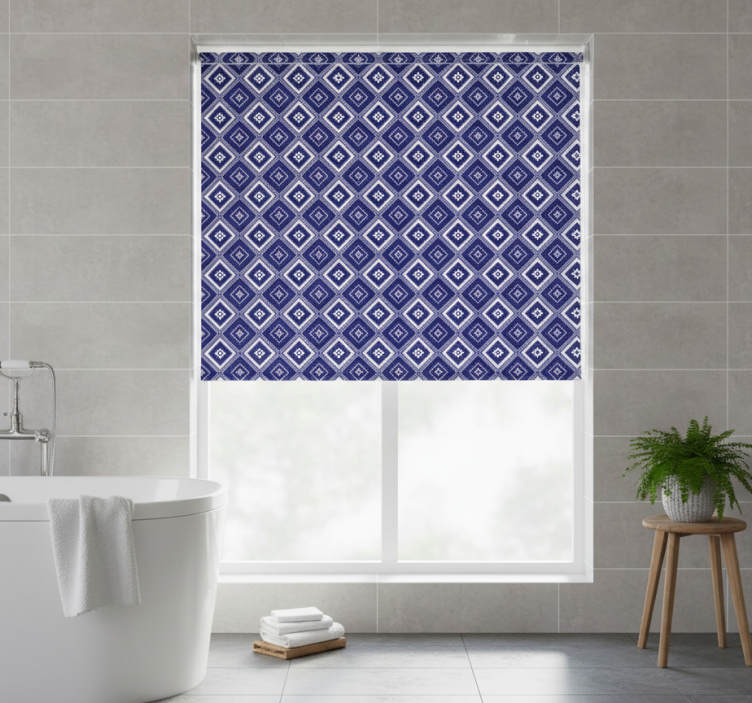 Blauw rolgordijn met blauw diamantmotief