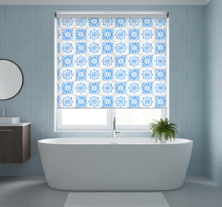Blauw rolgordijn met ingewikkelde blauwe patronen