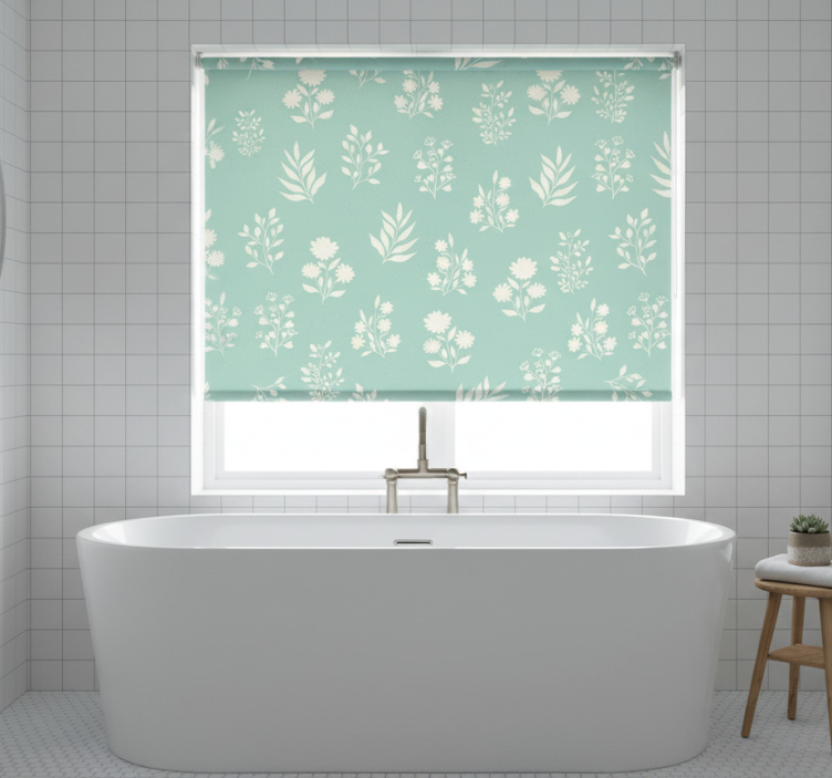 Blauw rolgordijn met klein bloemenpatroon