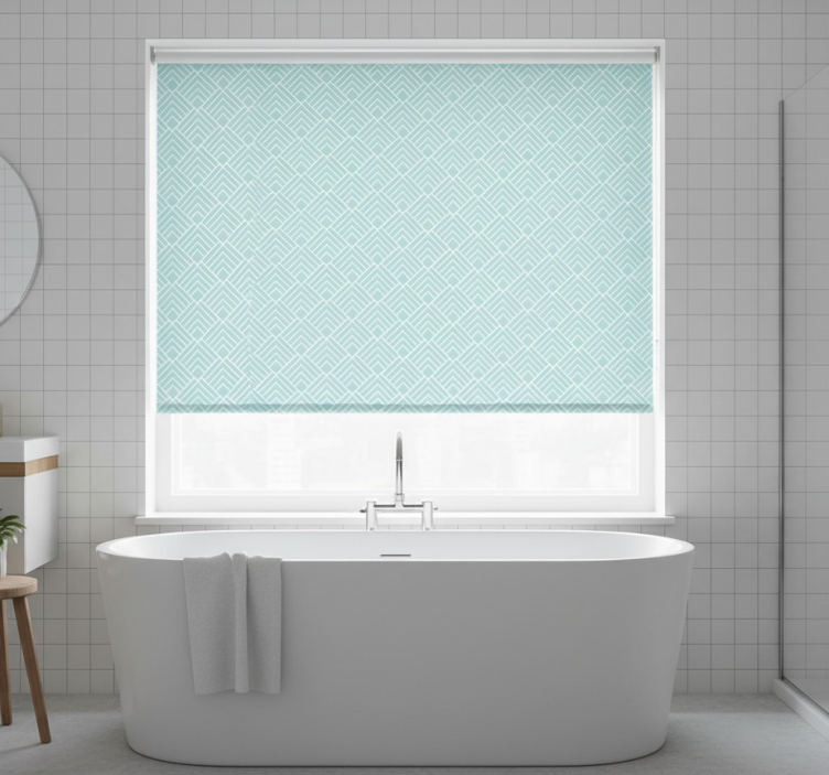 - Blauw rolgordijn met lichtblauwe zigzaglijnen