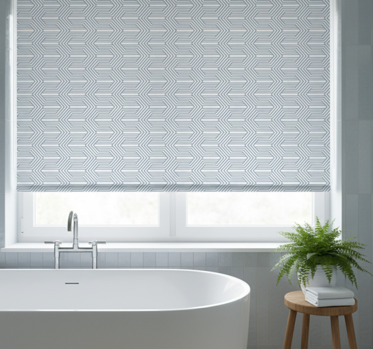 Blauw rolgordijn met optische illusie witte lijnen