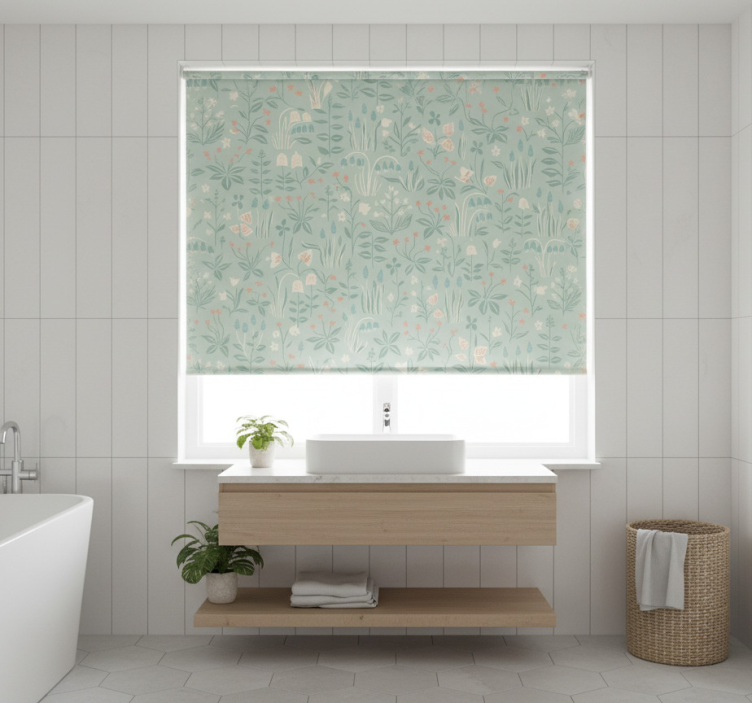 Blauw rolgordijn scandi bloemmotief