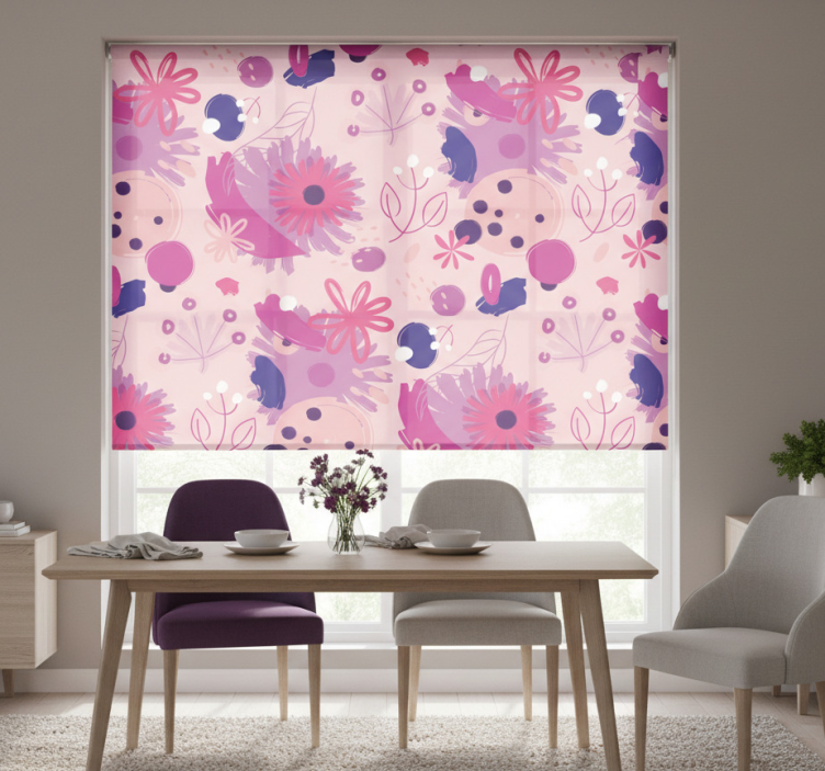 Eetkamer rolgordijn abstract paarse bloemen