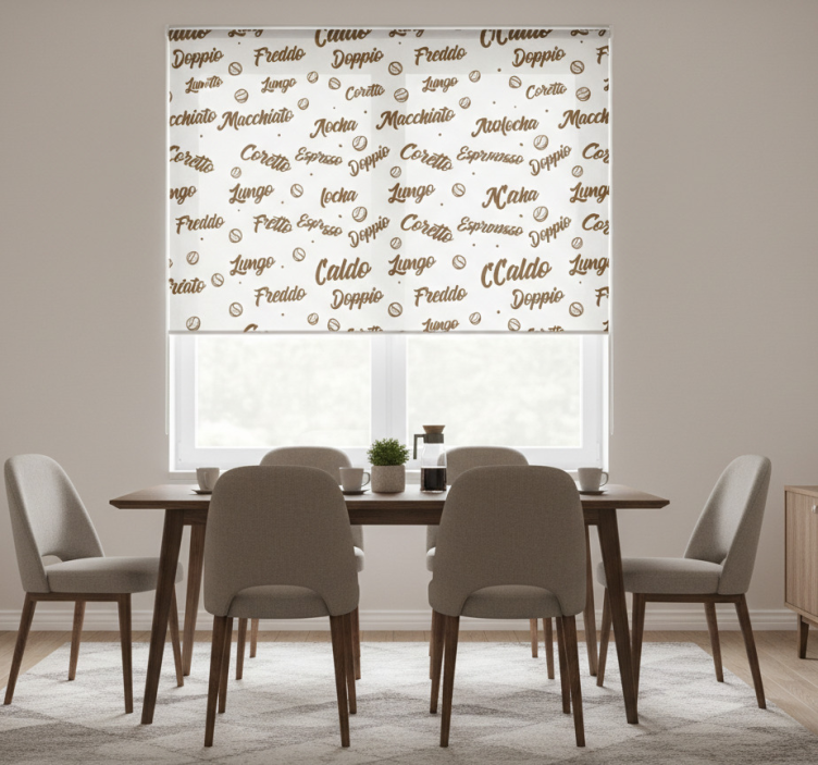 Welkom bij ons prachtige Eetkamer rolgordijn coffee elke dag! Dit rolgordijn heeft een elegant en modern ontwerp dat perfect past in elke eetkamer. De warme koffietinten zorgen voor een gezellige sfeer, terwijl het strakke ontwerp een stijlvolle uitstraling biedt. Dankzij de veelzijdigheid van dit rolgordijn kunt u eenvoudig de hoeveelheid licht in uw kamer regelen, waardoor het zowel functioneel als decoratief is!