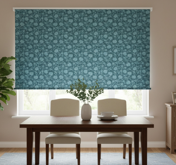 Eetkamer rolgordijn geheimen van de tuin blauw