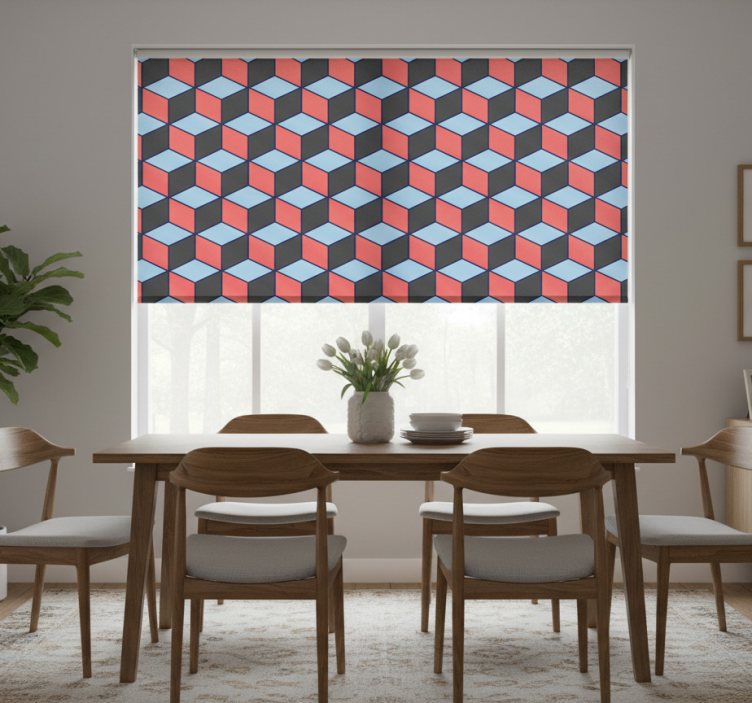 Eetkamer rolgordijn geometrische vierkanten 3d