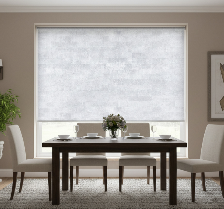 Eetkamer rolgordijn grijs baksteenpatroon verouderd
