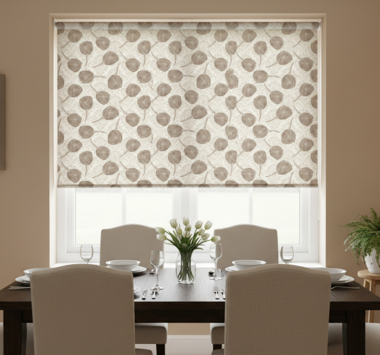 Eetkamer rolgordijn grijs tulpenpatroon met acanthus