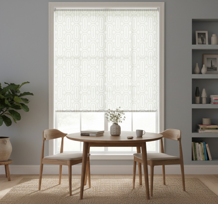 Eetkamer rolgordijn grijze geometrische lijnen