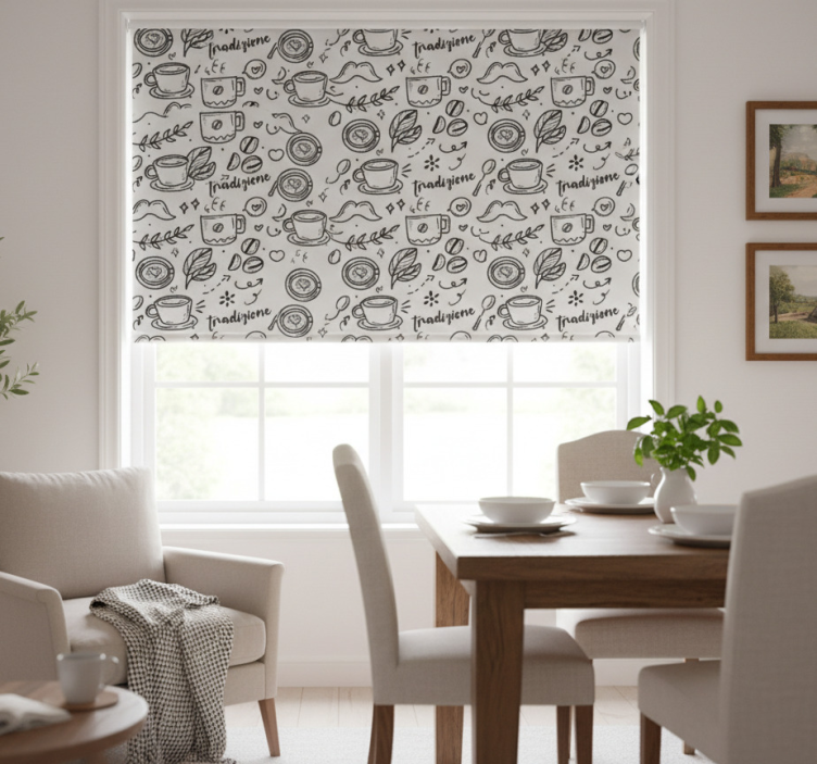 Eetkamer rolgordijn italiaanse traditie met koffie