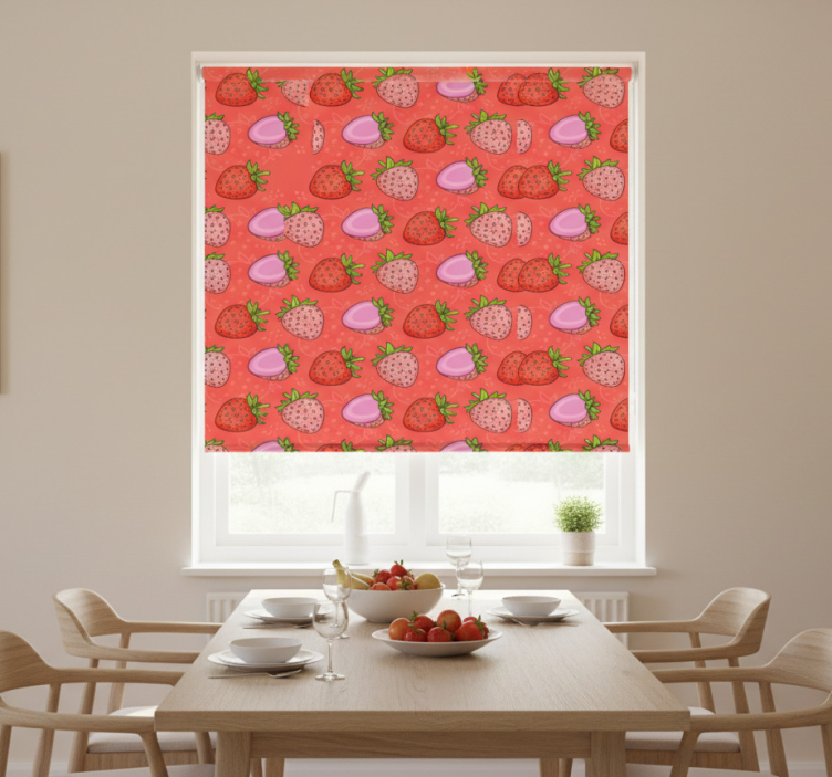 Eetkamer rolgordijn naadloze rode en roze aardbeien