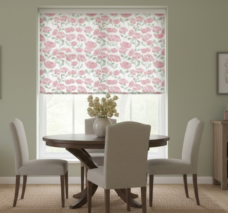 Eetkamer rolgordijn natuurlijk vintage rozenpatroon