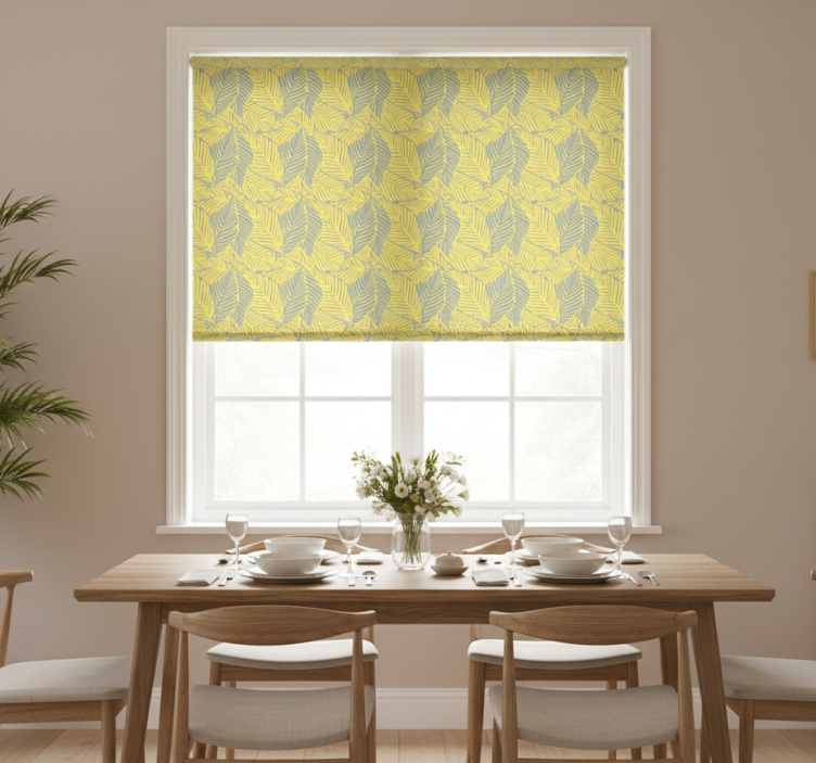 Breng een vleugje tropische flair in uw eetkamer met ons Eetkamer rolgordijn pantone tropische bladeren. Dit prachtige rolgordijn, versierd met levendige bladeren in een harmonieus kleurenpalet, creëert een sfeervolle ambiance die elke maaltijd transformeert in een bijzondere ervaring. De combinatie van stijlvolle ontwerpen en praktische functionaliteit maakt dit rolgordijn een ideale decoratie voor uw eetruimte. Het biedt niet alleen privacy, maar laat ook een subtiele hoeveelheid natuurlijk licht binnen, waardoor de ruimte er groter en uitnodigender uitziet!