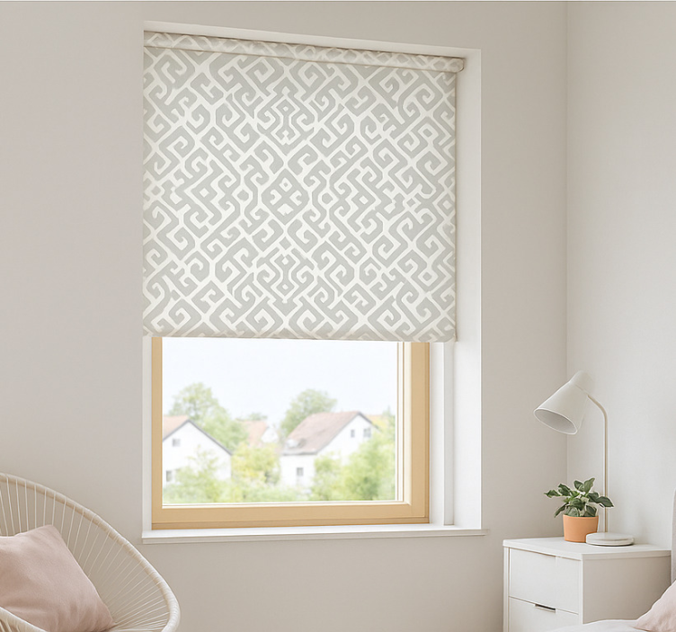 Geometrisch geweven rolgordijn tienerkamer