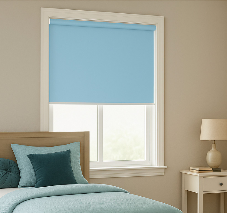 Hemelsblauwe kleur rolgordijn tienerkamer